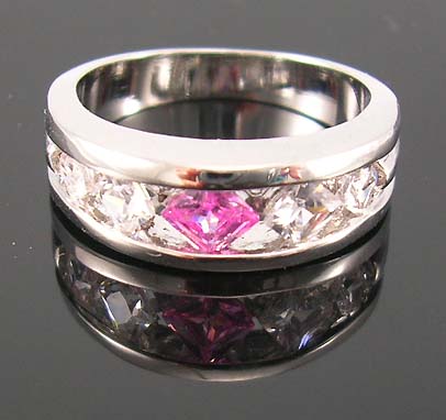 Wholesale jewelry fashion cubic zirconia promise ring online distribute double band ring combination of pink and clear cz stones |