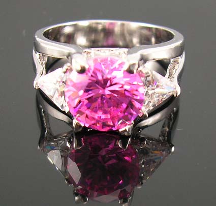 Wholesale giftware fashion cz ring distribute rhodium double band ring holding pink and clear diamond cubic zirconia stones |